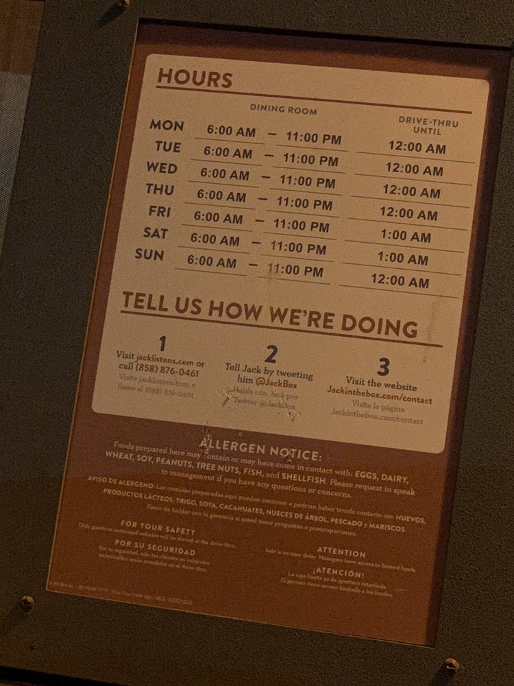 "Jack in the Box is a casual restaurant offering a variety of options for breakfast, lunch, and dinner. With convenient services like delivery, takeout, and reservation options, it caters to a wide range of customers. Located in Daly City, CA, it provides a comfortable dining experience with amenities like outdoor seating and gender-neutral restrooms.